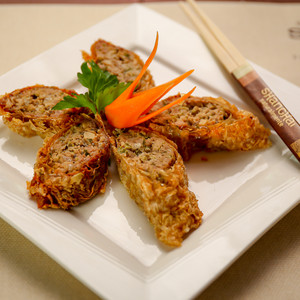 Sfoglia di toufu, carne di maiale, uova, bambù, spaghetti di soia,