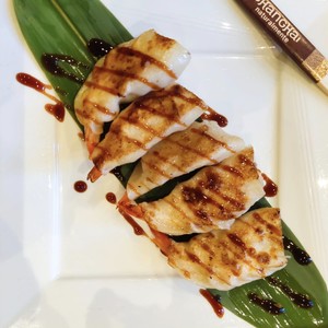 Farina di grano*,salmone, gamberi*, zenzero, salsa teriyaki*, salsa di soia*