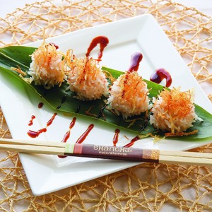 Farina di grano, gamberi*, zenzero, sesamo, salsa di soia