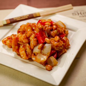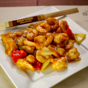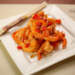 Gamberi*, peperoni, cipolla, arachidi, chili, salsa di soia