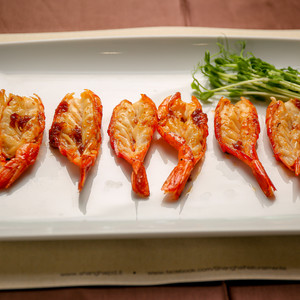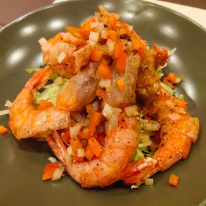 Gamberoni*, zenzero, aglio, salsa ostriche